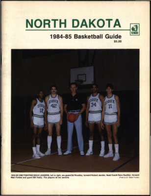 Media guide for the 1984-1985 UND men's basketball team. The guide contains information about the team and its coaches, and was sent to local and regional media outlets.