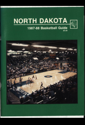 Media guide for the 1987-1988 UND men's basketball team. The guide contains information about the team and its coaches, and was sent to local and regional media outlets.