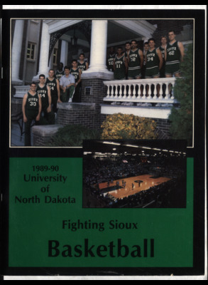 Media guide for the 1989-1990 UND men's basketball team. The guide contains information about the team and its coaches, and was sent to local and regional media outlets.