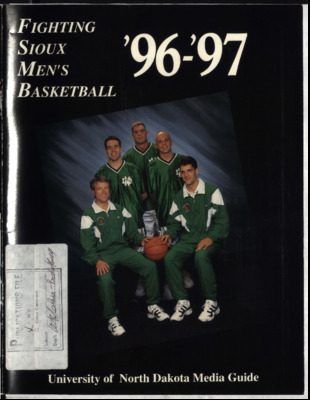Media guide for the 1996-1997 UND men's basketball team. The guide contains information about the team and its coaches, and was sent to local and regional media outlets.