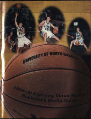 Media guide for the 1998-1999 UND men's basketball team. The guide contains information about the team and its coaches, and was sent to local and regional media outlets.