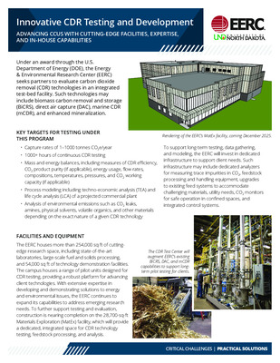 • Innovative CDR Testing and Development by University of North Dakota. Energy and Environmental Research Center