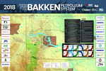 Map of oil wells in western North Dakota. Includes wells with a spud date prior to August 2018. Map sponsors are illustrated by company logos.