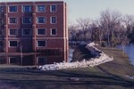 From back of photograph: "The sandbag dike which failed to provide protection for Smith Hall on the UND campus. April 26,1997."