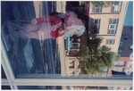 From back of photograph: "Downtown Grand Forks: Miscellaneous. Elf in Antique Store on 100 block of Demers Ave. (note water lines on window). October 5, 1997."