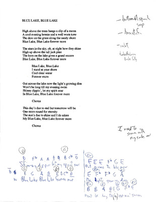 "Blue Lake, Blue Lake" Song Lyrics, undated
