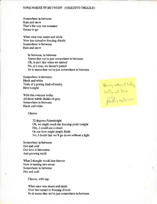 "Somewhere in Between (Freezing Drizzle)" Song Lyrics, undated