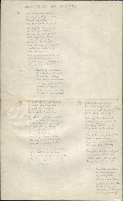 "Beaker's Bridge and Bullheads," Song Lyrics, undated