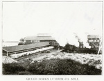 Photograph of the back side of the Grand Forks Lumber Co on the Red Lake River.