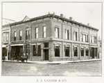 Photograph taken in the early 1900's shows the E.J. Lander & Company on the corner of the Finks and Gokey Block located at 414-420 DeMers Ave.The Finks and Gokey block is made up of two connected buildings, with the Finks building on the western side and the Gokey building on the east.