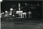 On the south side of street is Mandel's, The Book and Bible Shoppe, The Empire Theatre, Colonial Pancake House, apartment buildings, and other unidentifiable businesses.