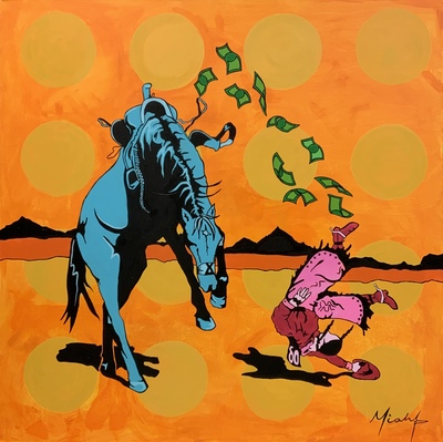 • Elk Hide Drum with Stick (horses) by Jim Bruce