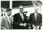 Walter Hjelle, Senator Estes Kefauver, and Raymond Vendsel hold a conversation at an undated event (from back of photograph).