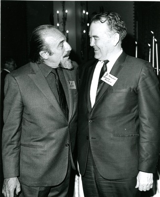 Senator Quentin Burdick (right) visits with record-industry executive Mitch Miller at a 1969 Reception for the National Committee for the Recording Arts.