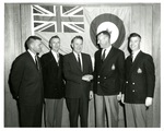 Senator Quentin Burdick poses for a photograph with several officers from the Royal Canadian Air Force. From back of the photograph: