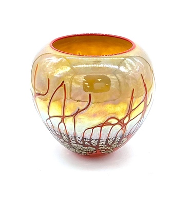Jon Offutt is a Fargo based glass artist who has spent his career in glass blowing. He is especially known for his serene landscape vessels. After many years of building his skills, and serving the community, he is now reevaluating his relationship with his work—experimenting with new colors and researching new color applications on 2D forms. He still has a selection of vessels for sale and is accepting 2D commissions.